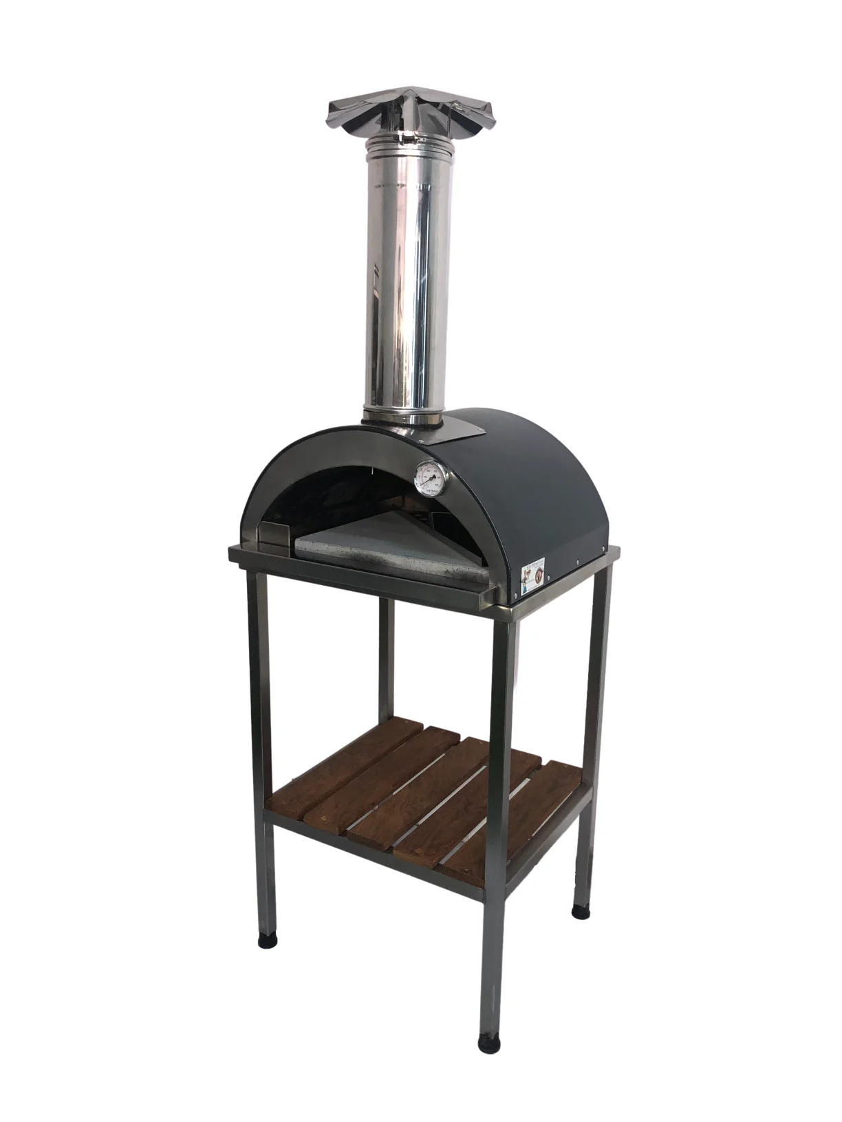 ובנוסף יש בקדמת הטאבון שעון טמפרטורה וארובת נירוסטה דבר המאפשר שימוש בנוסף לגז גם שילוב של עץ בטאבון לקבלת ארומה.