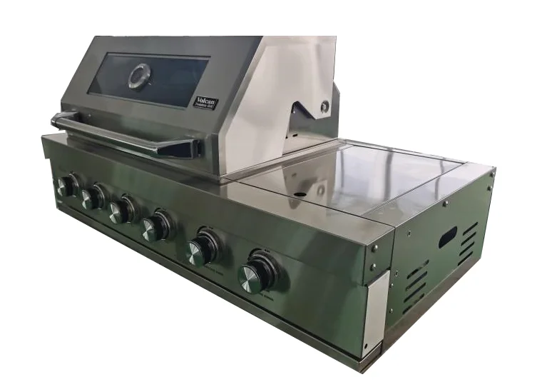 גריל גז נירוסטה בילט אין (BUILT IN) + כירת צד דגם VOLCAN B6, איכותי עשוי נירוסטה # 304.
