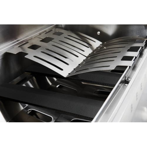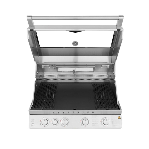 מכסה גריל מאסיבי, מד טמפ׳, חלון לצפייה בבשר, מגש שומנים נשלף מקדימה, רשת חימום עליונה והצתה מכנית.