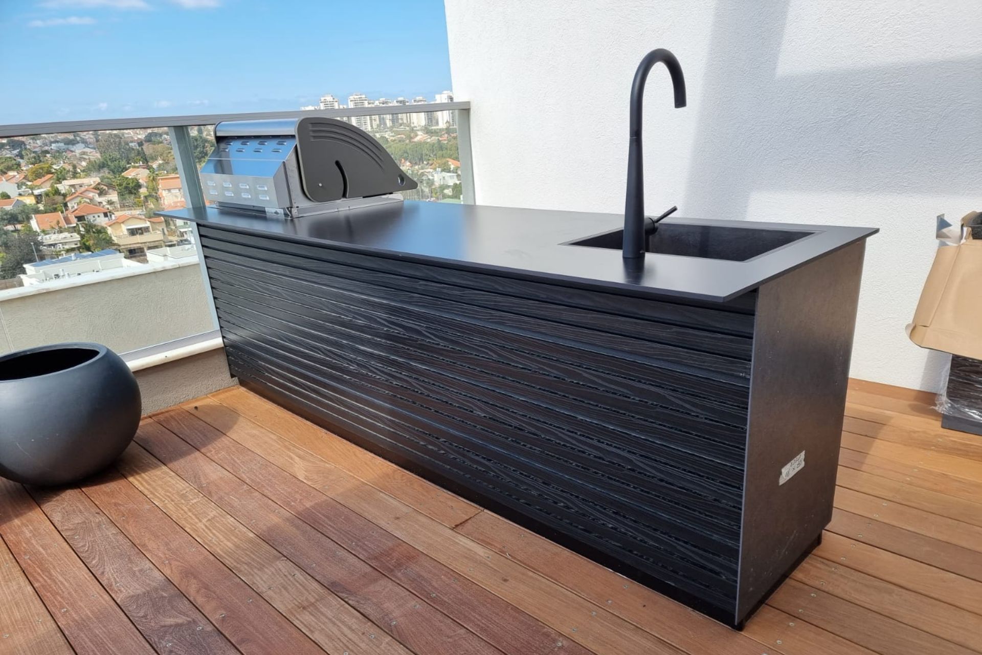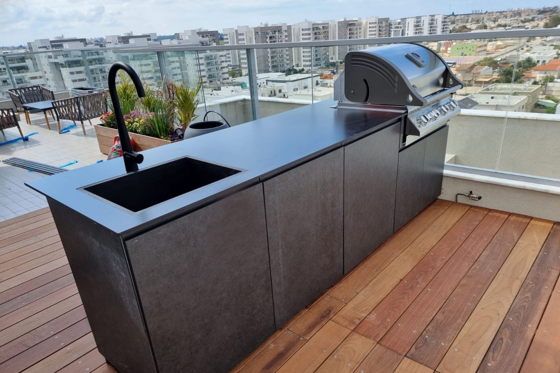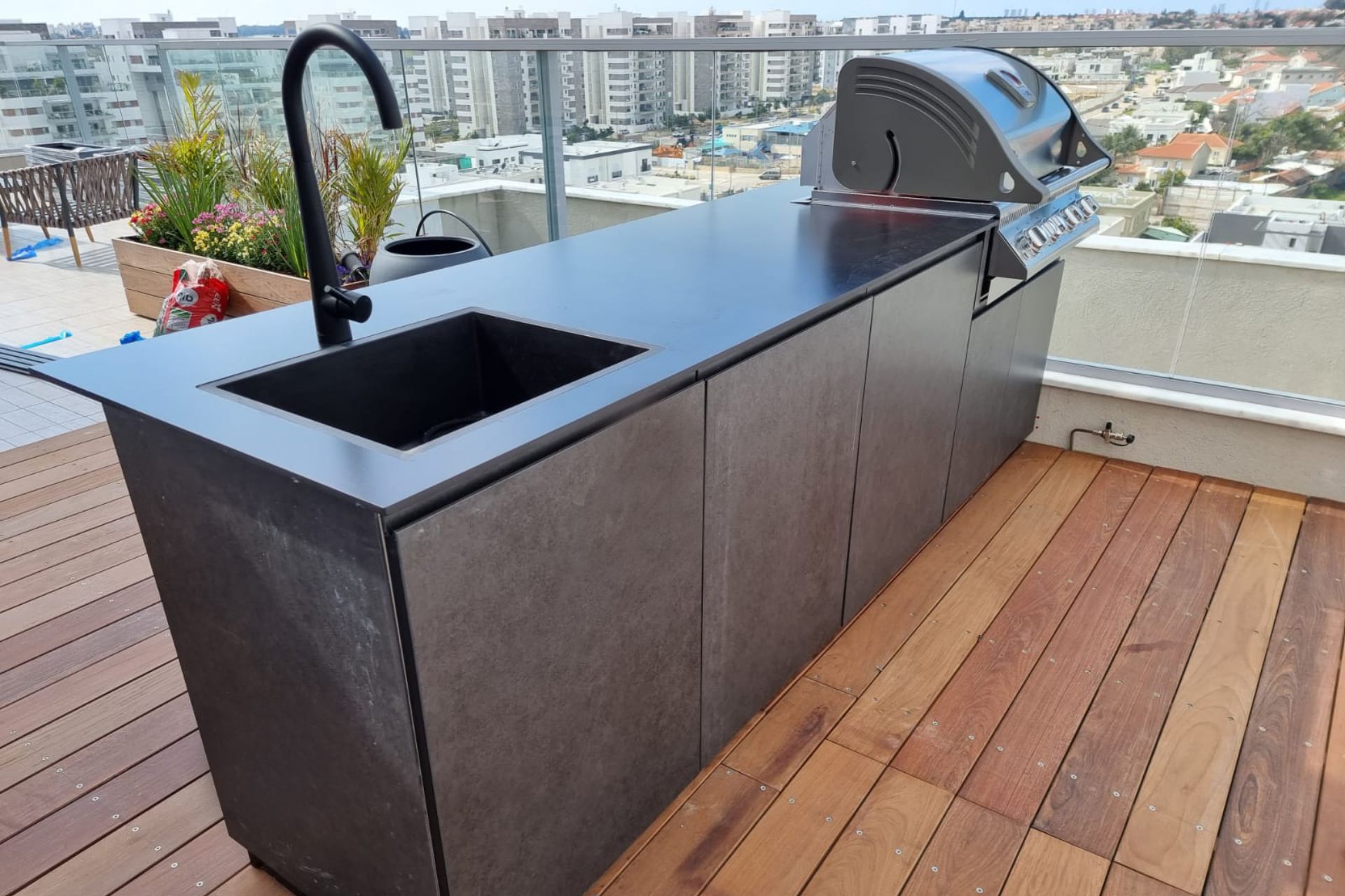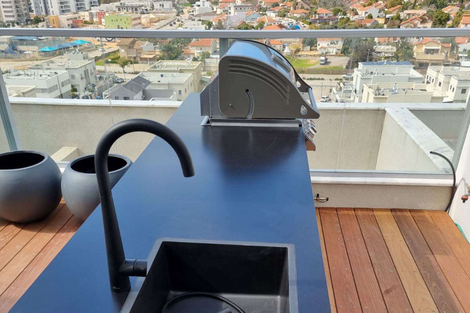גריל עוצמתי 4 מבערים, כיור גרניט, ברז נשלף